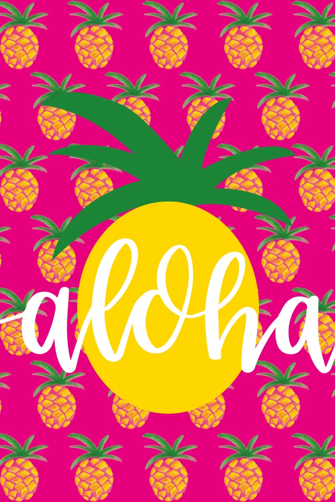 Einfachkarte - Hoch Bunte Grußkarte Aloha im angesagten Tropical-Style mit hangemalten Ananas in Aquarell-Optik