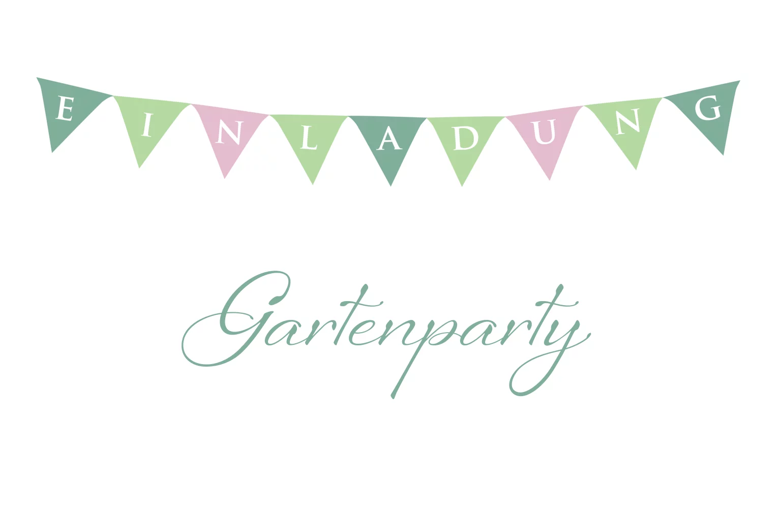 Klappkarte - Quer Einladung zur Gartenparty, weiss und grün, Girlande