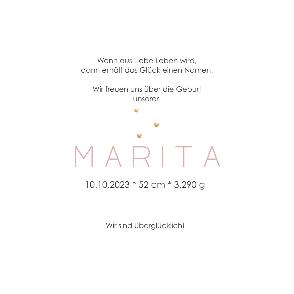 Süße Geburtskarte in Rosa, mit Foto und Foliendruck