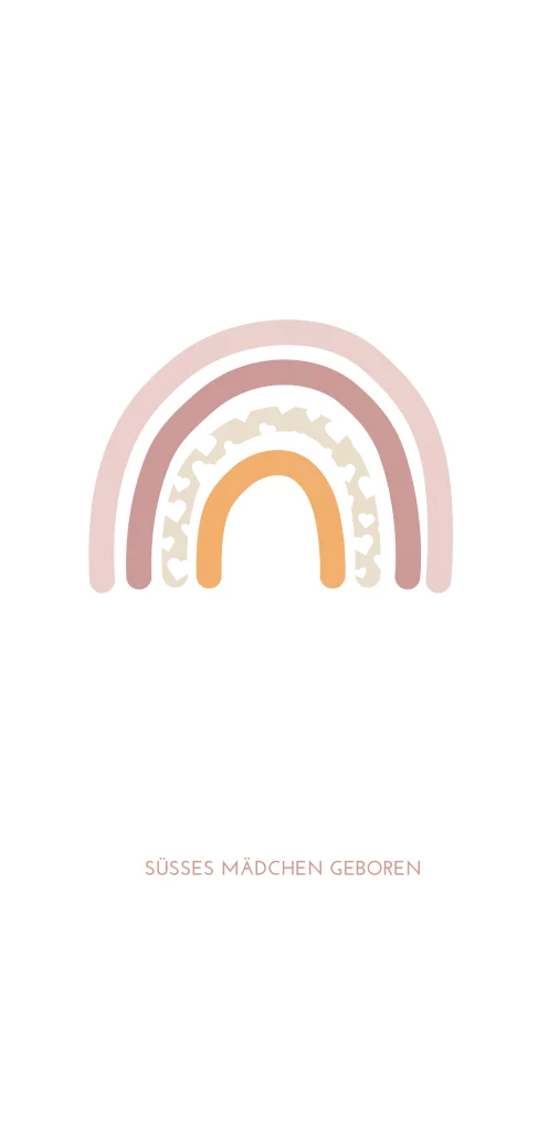 Hübsche Geburtskarte mit einem Regenbogenin rosa und dem Namen Ihrea Kindes. Die Folie verleiht der Karte eine ganz besondere Hochwertigkeit.