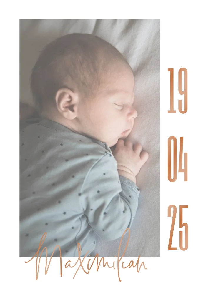Elegante Geburtskarte für Ihren Nachwuchs mit Foto und Foliendruck