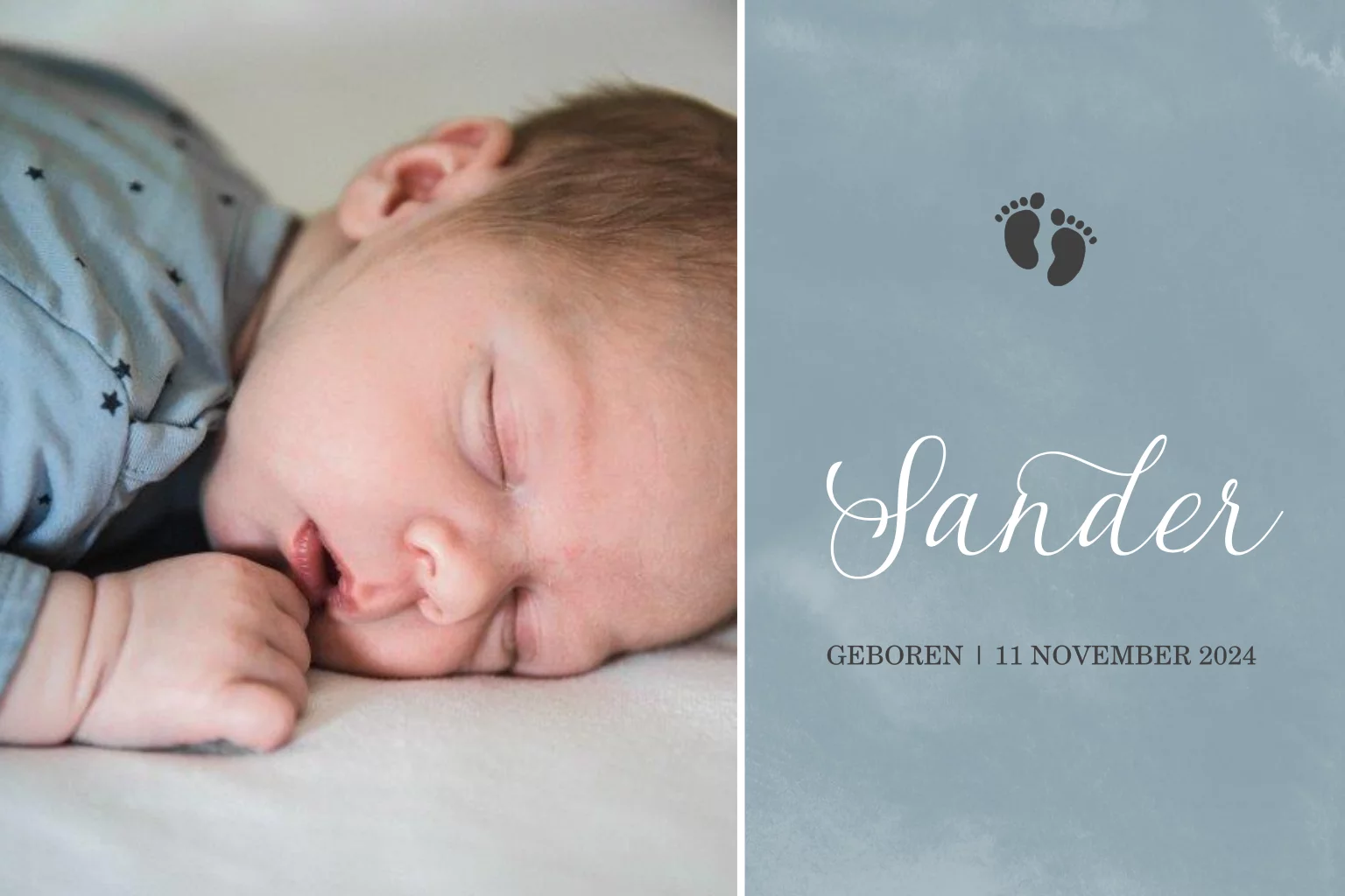 Hübsche Dankeskarte zur Geburt Ihres Sohnes mit Foto und kleinen Füßen