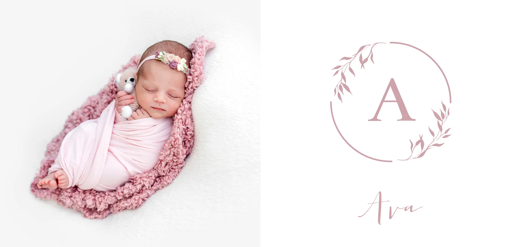 Elegante Geburtskarte mit Foto und Monogramm
