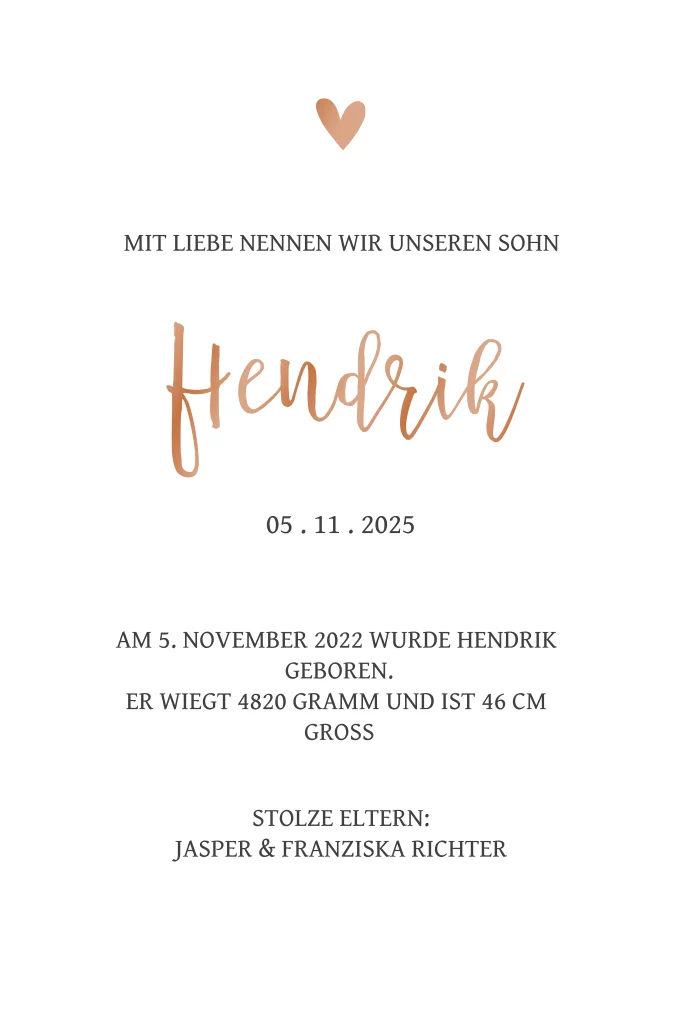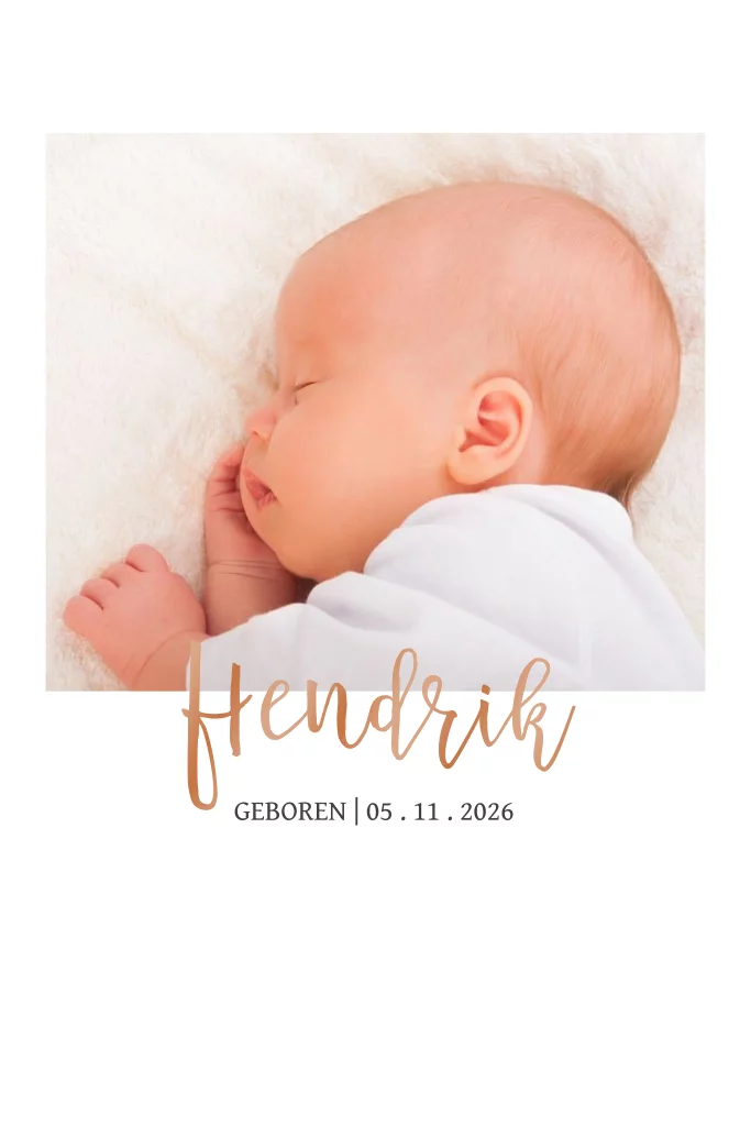 Stilvolle Geburtskarte mit einem Foto und edlem Foliendruck