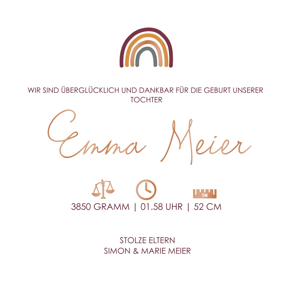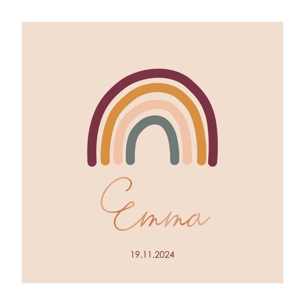 Niedliche Geburtskarte mit einem Regenbogen und individuellem Foto