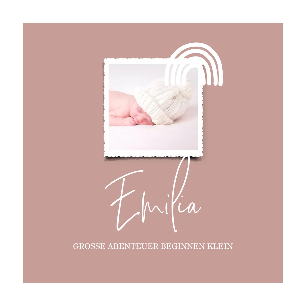 Hübsche Geburtskarte mit Foto, Regenbogenmotiv und Folienveredelung