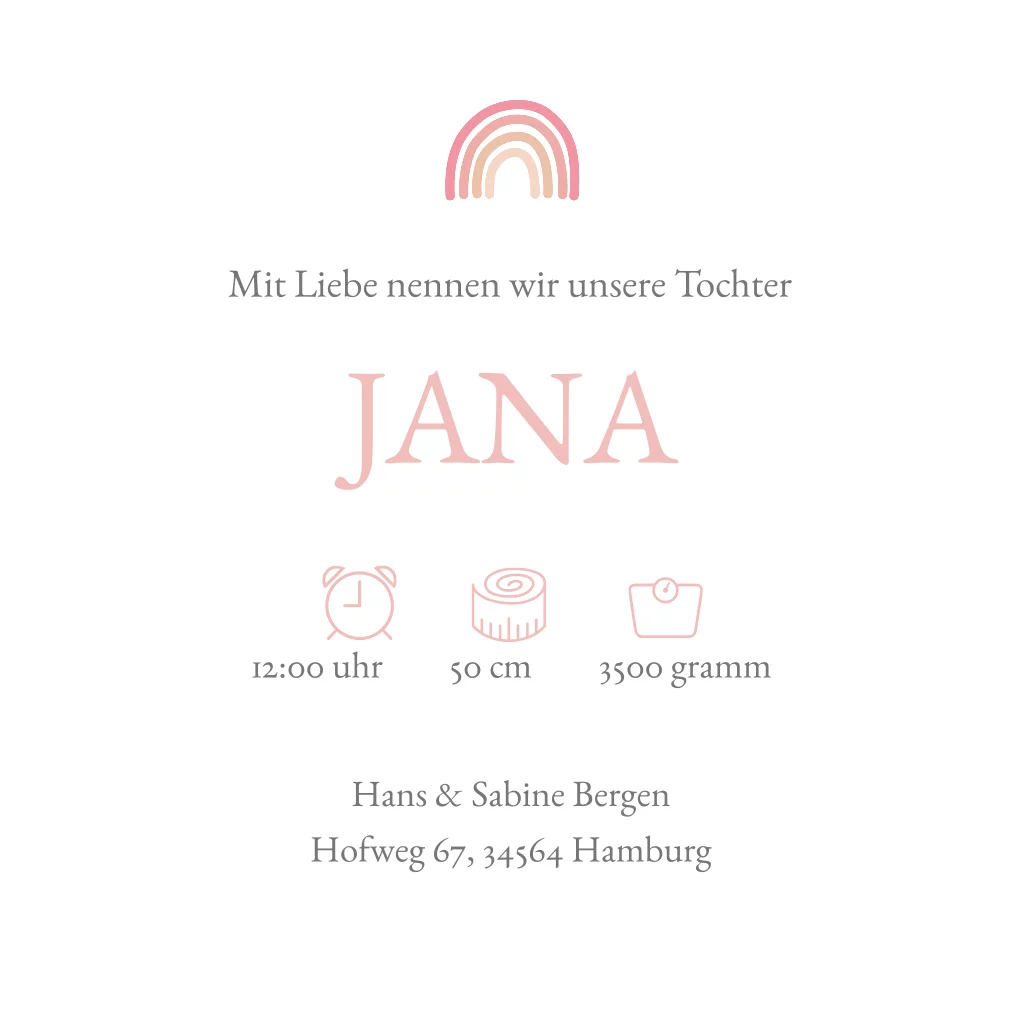 Moderne Geburtskarte mit klarem Design für Ihren Nachwuchs