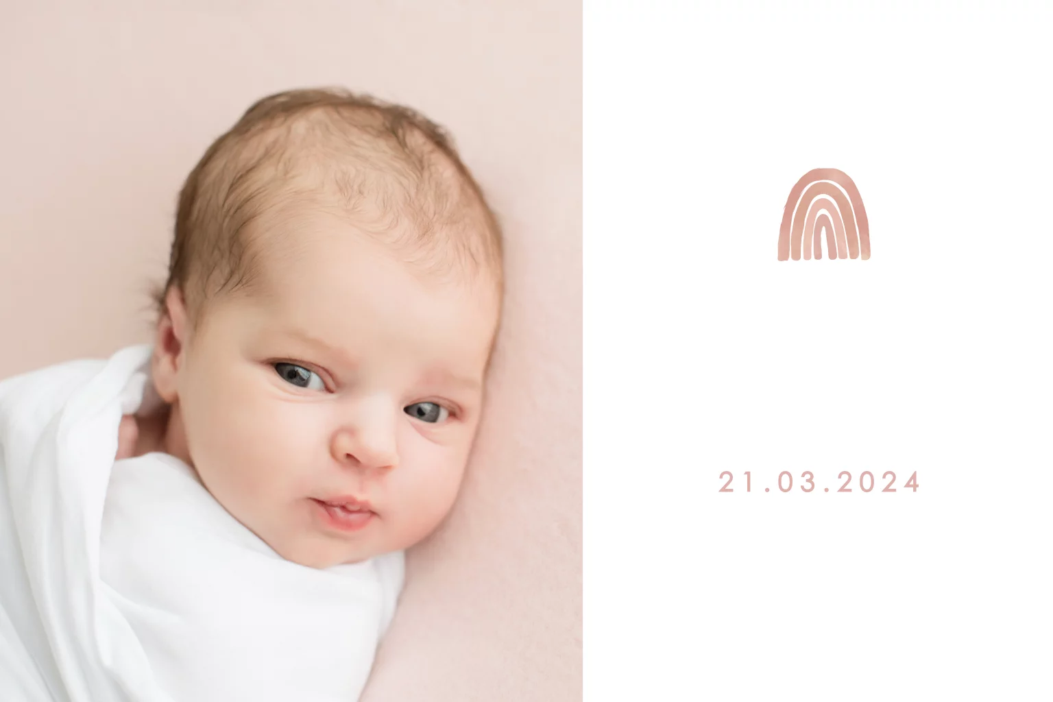 Süße Geburtskarte mit Foto, Regenbogen und Foliendruck