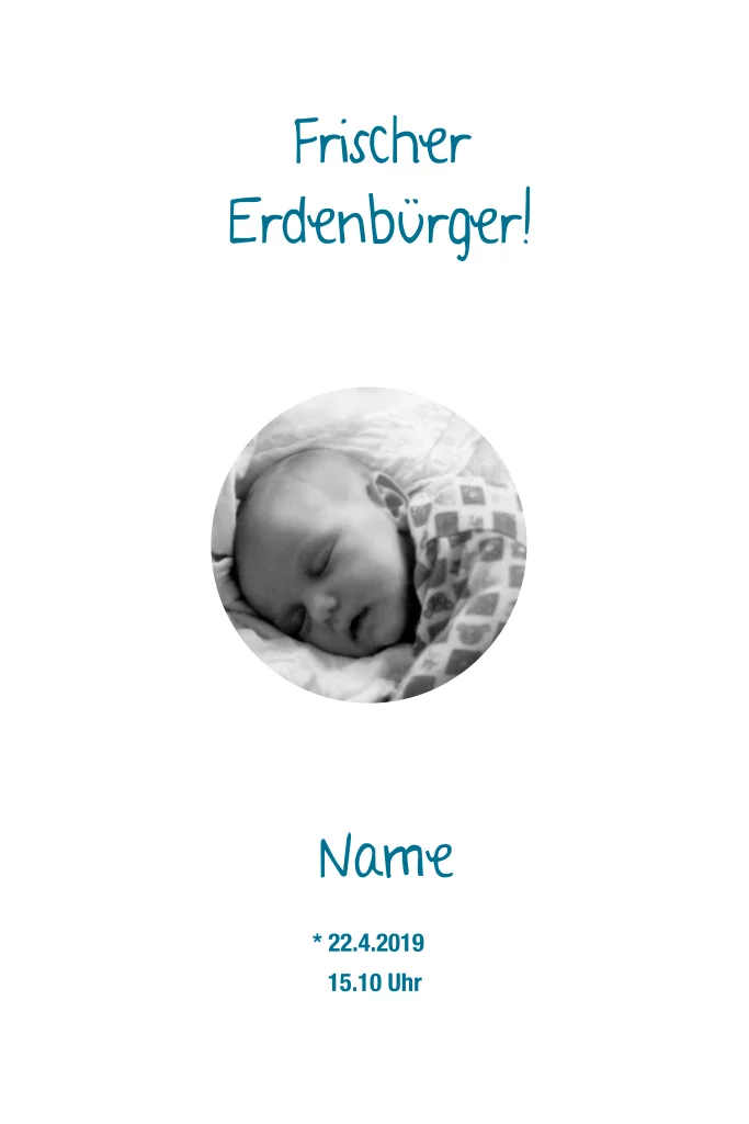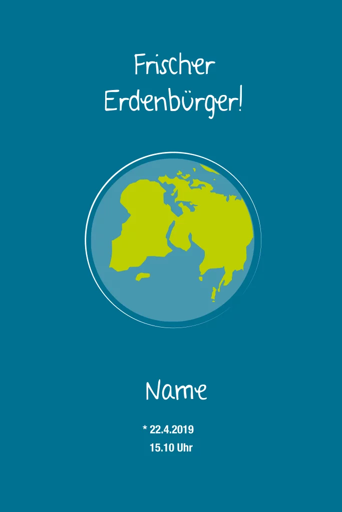 Klappkarte - Hoch Karte in schönem Petrol mit Erdkugel auf Vorderseite.