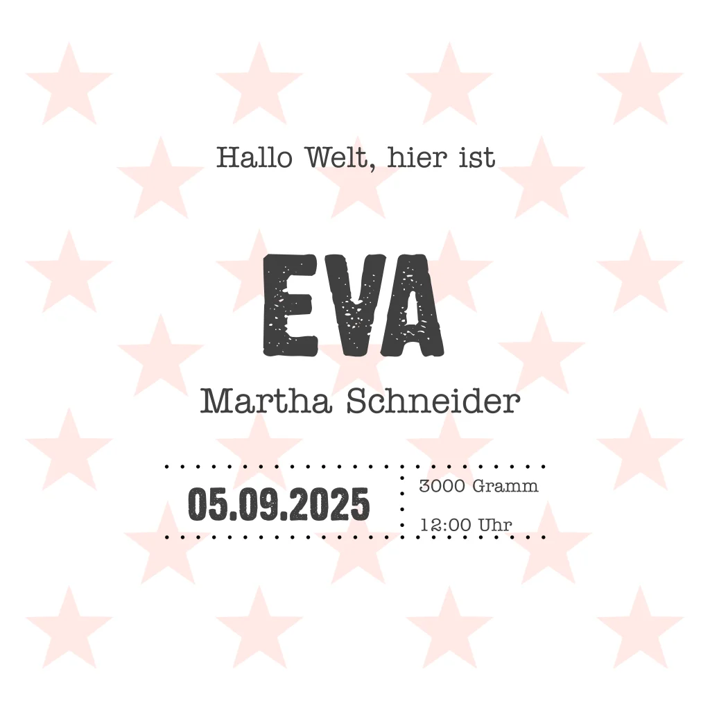 Süße Geburtskarte in Rosa mit vielen Sternen für Mädchen