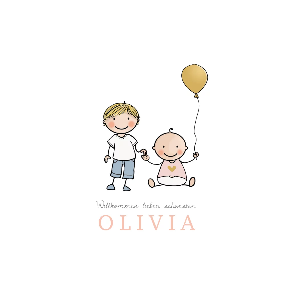 Süße Geburtskarte für kleine Schwester mit großem Bruder