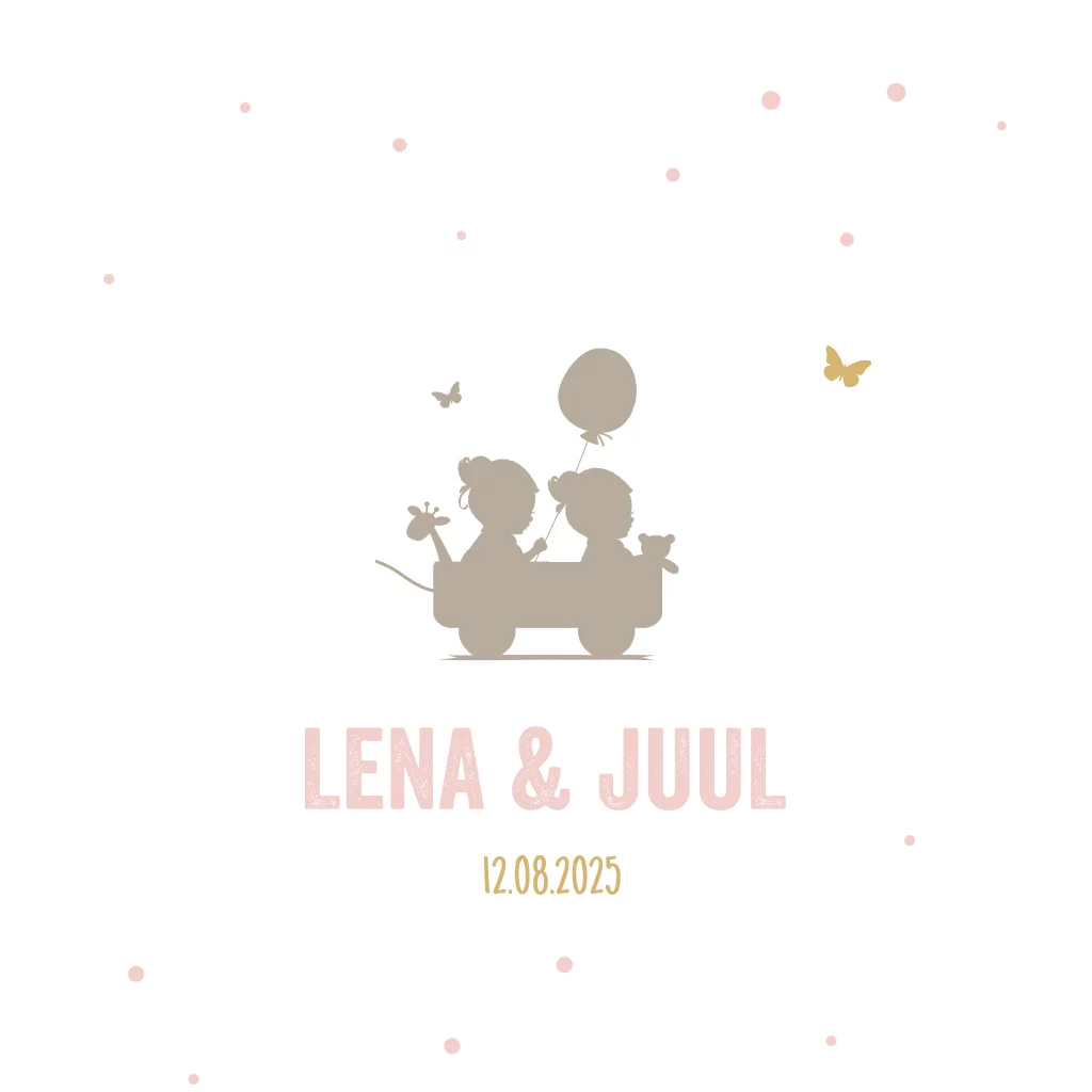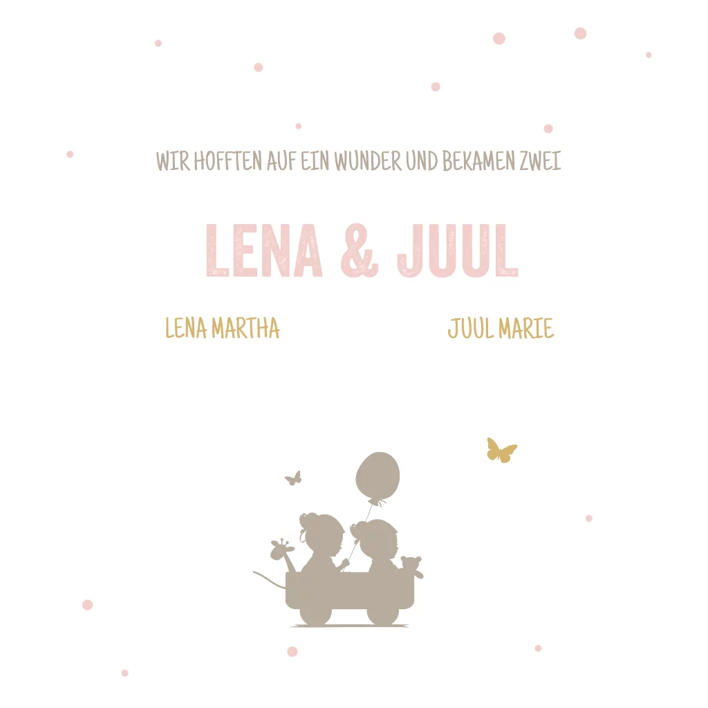 Klappkarte - Quadratisch Weiße Karte mit Geschwisterpaar und rosa Namen