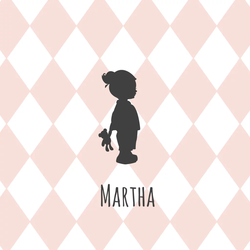 Klappkarte - Quadratisch karierte Klappkarte mit Mädchen und Teddy in schwarz