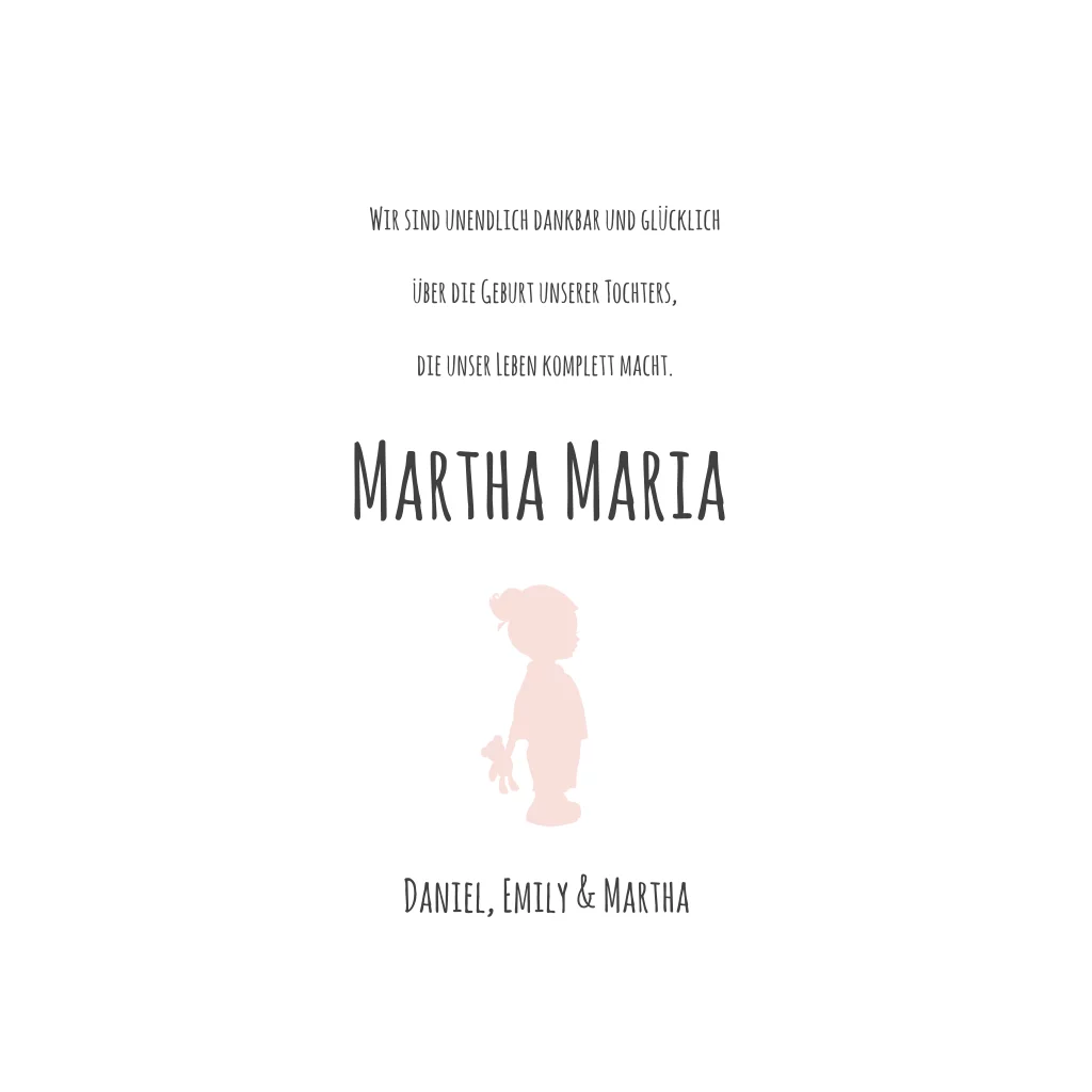 Süße Geburtskarte mit Hintergrund in Weiß und Rosa