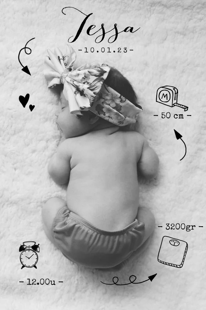 Geburtskarte mit großem Foto und allen wichtigen Informationen