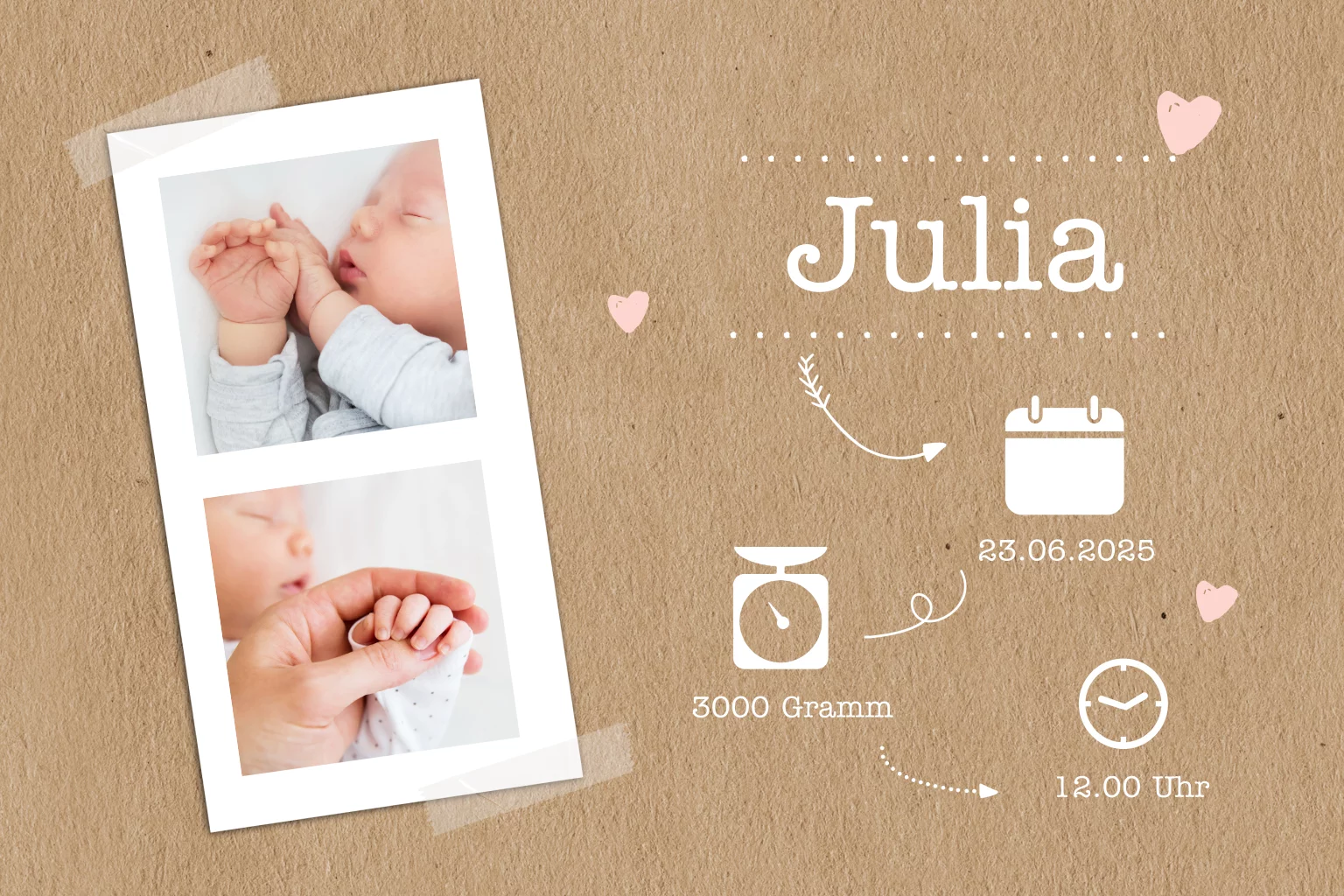 Hippe Babykarte mit Cliparts und Bilderstreifen