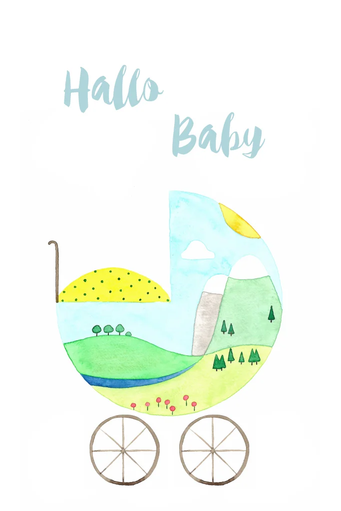 Einfachkarte - Hoch Weiße Karte bunter Kinderwagen