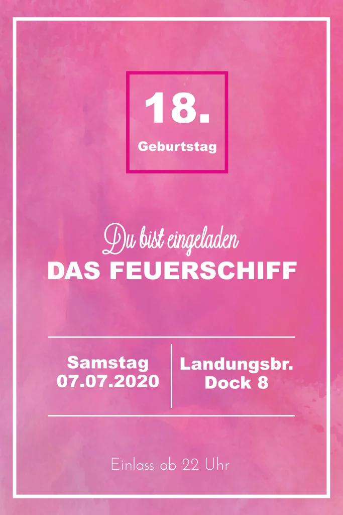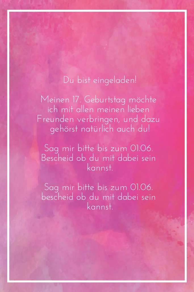 Klappkarte - Hoch Pinke Wasserfarbe schmückt die Geburtstagseinladung
