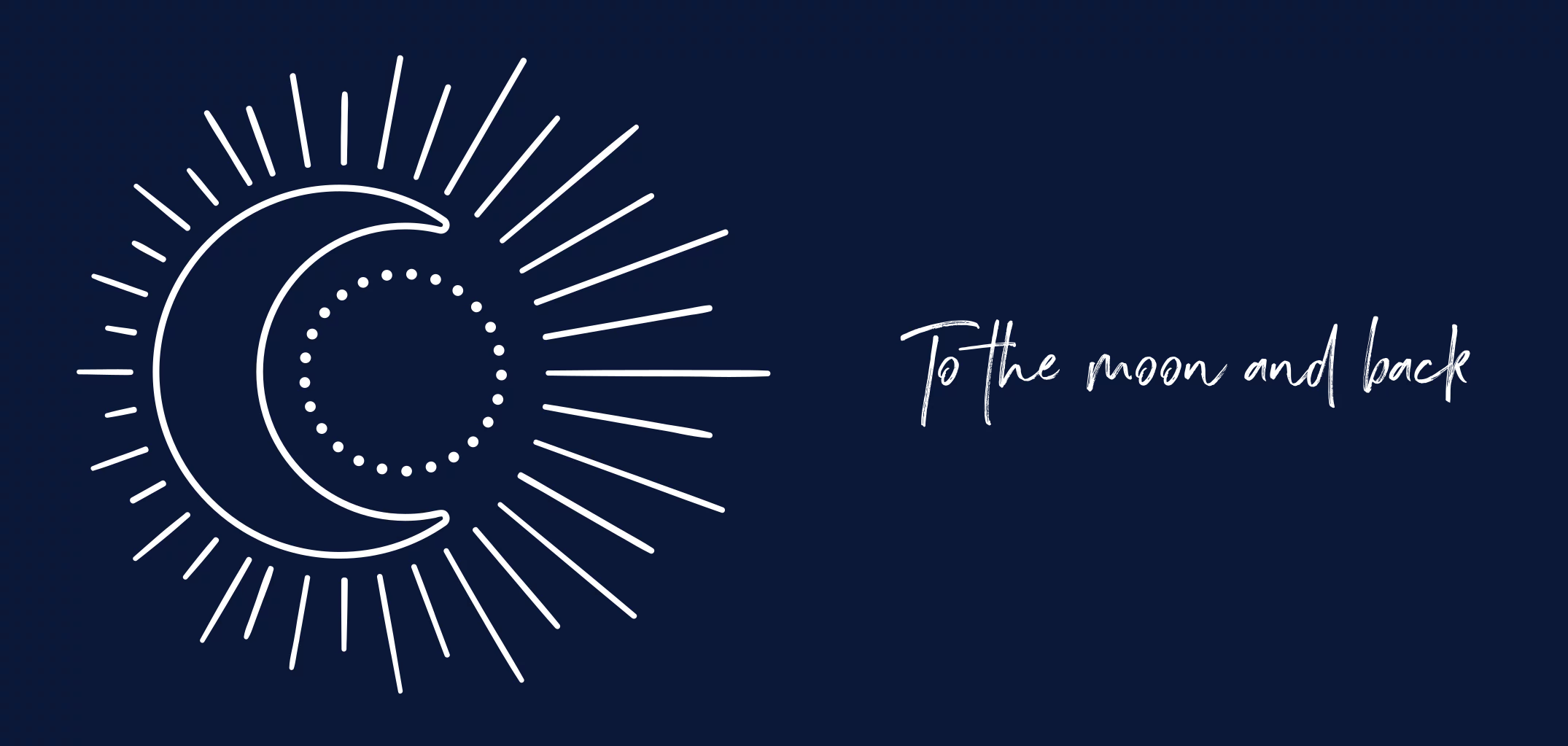 Glückwunschkarte zum Geburtstag mit dem Text To the moon and back. Veredelt mit einer Goldfolie.