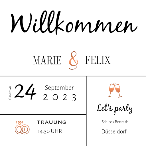 Willkommensschild mit kleinen icons: "Großer Tag" - 70x70 cm