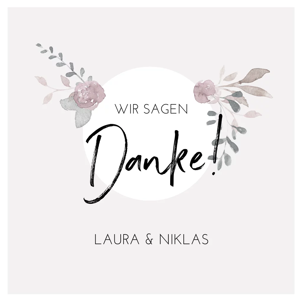 Romantische Klappkarte im modernen quadratischen Format mit zarten Boho Blumen Elementen in dezenten Naturtönen. Die Aquarell Illustrationen sind handgemacht, machen die Dankeskarte zum absoluten Hingucker und passen perfekt zur romantischen Boho Hochzeit!