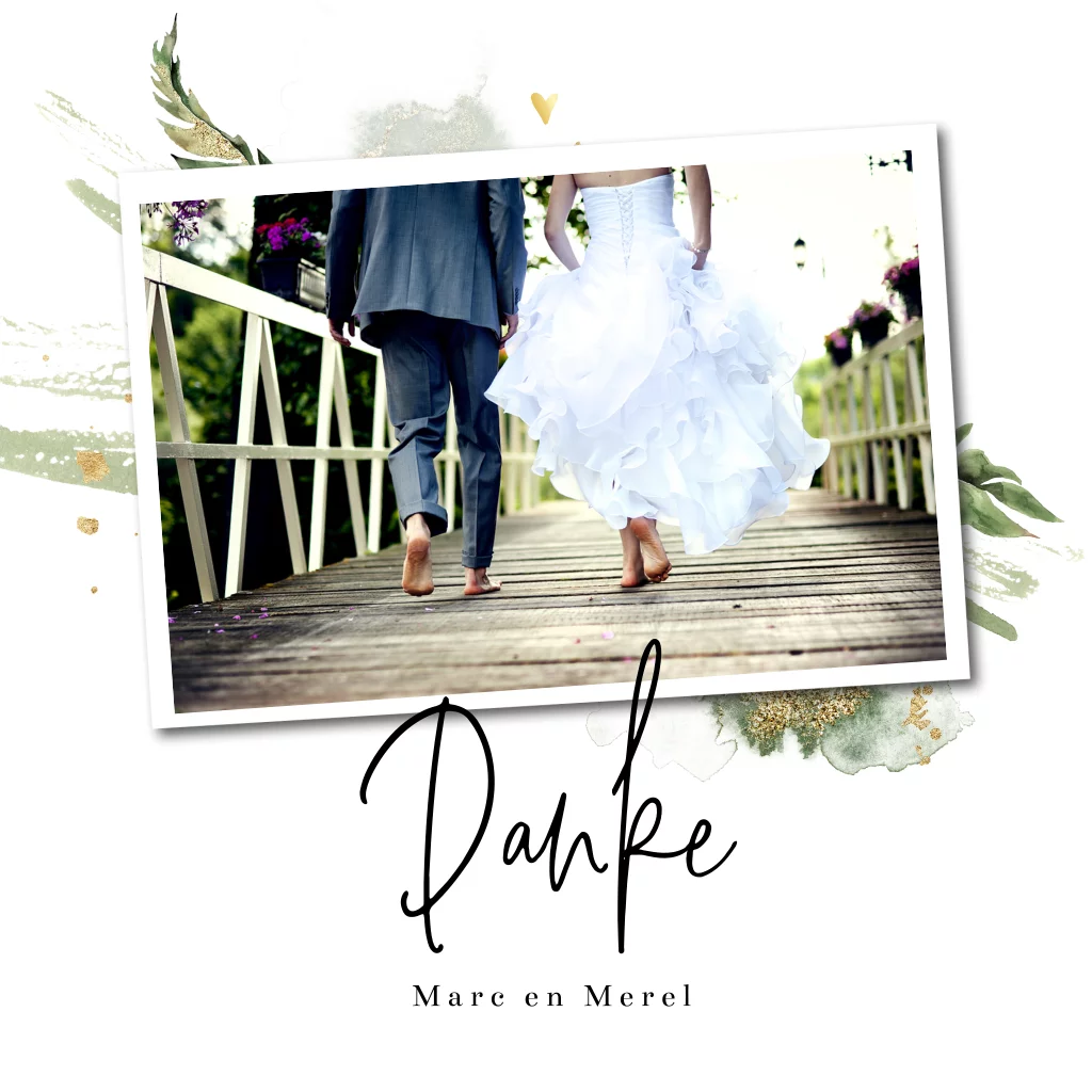 Dankeskarte mit Ihrem Foto und grünem Blätterhintergrund
