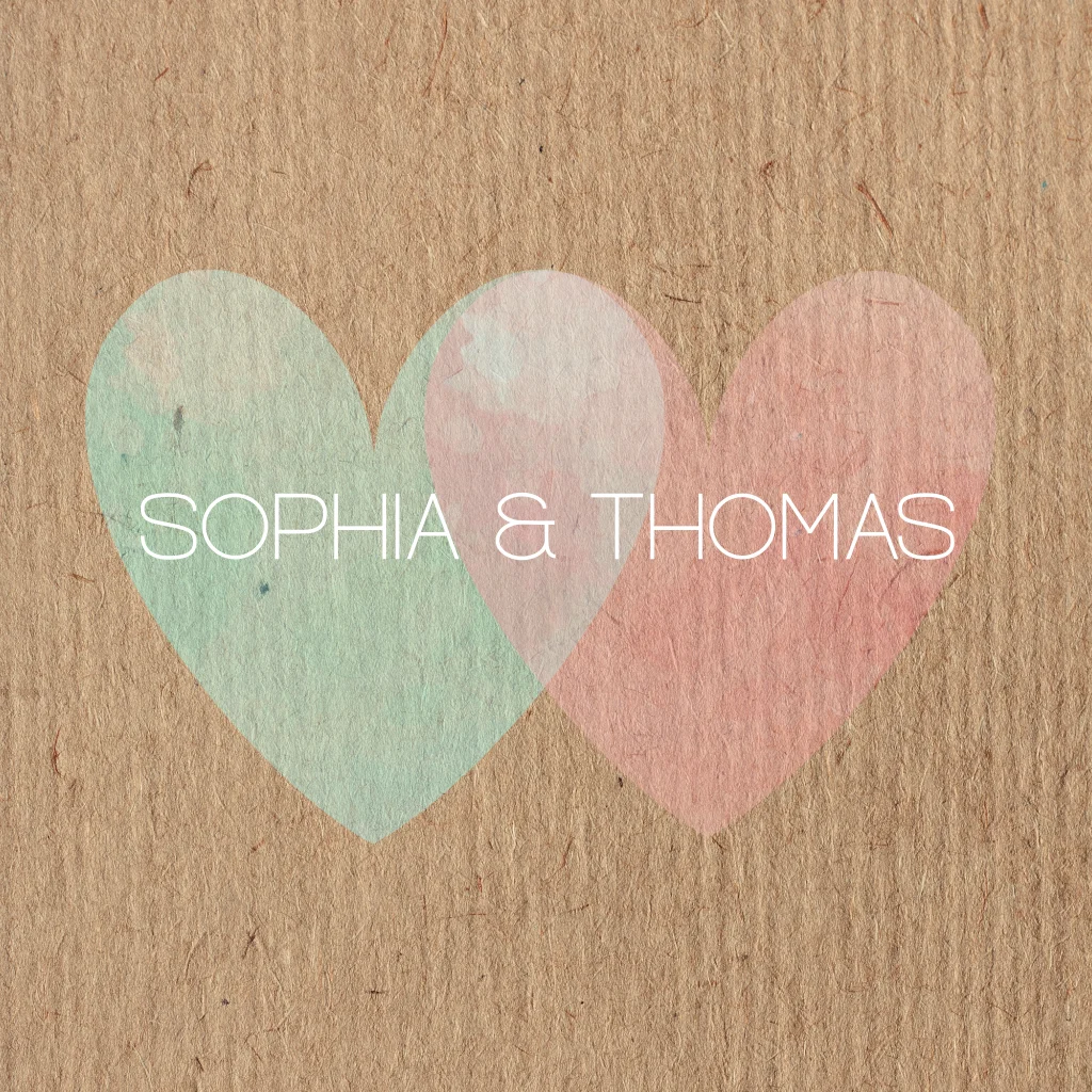 Hochzeitseinladung mit zwei Herzen und Ihren Namen