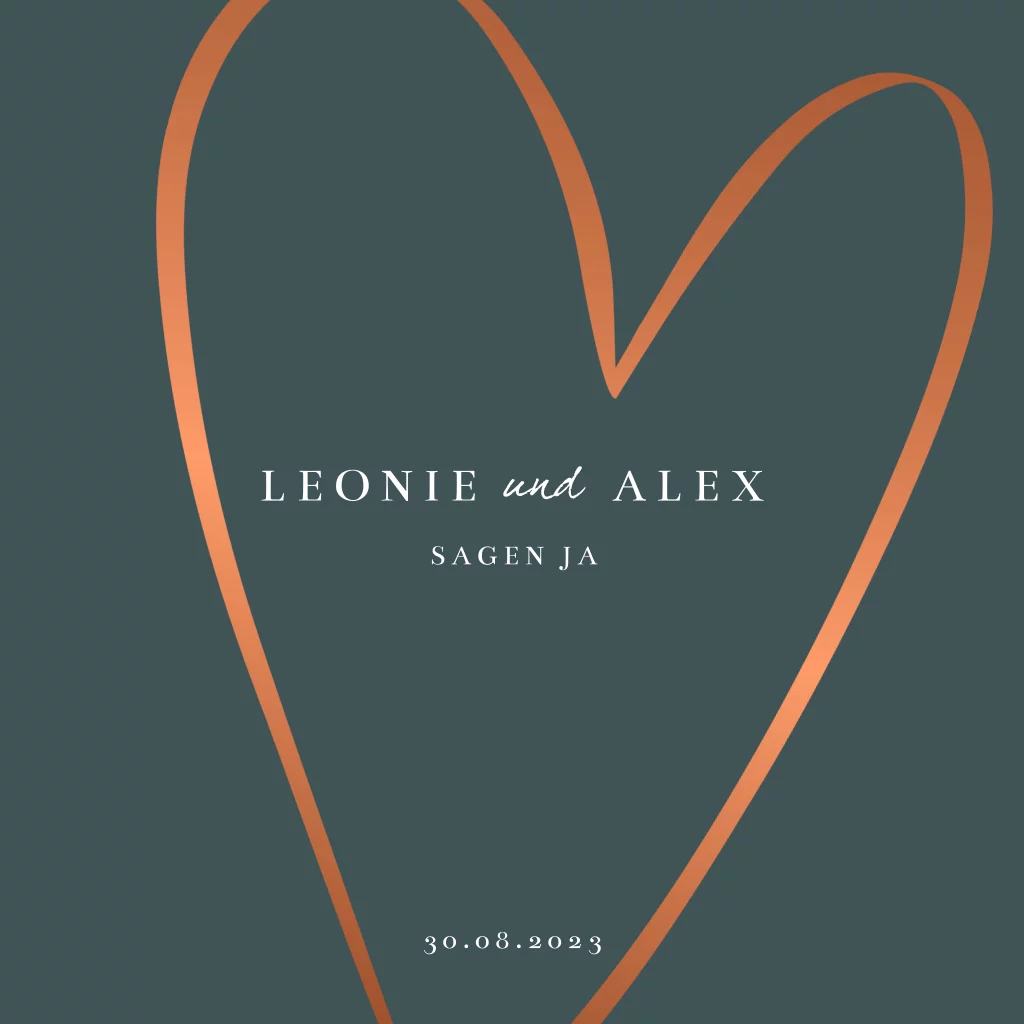 Ein großes Herz auf einem eleganten Hintergrund, mehr benöitgt es nicht, um Ihre Gäste zu Ihrer Hochzeit einzuladen. Die Hochzeitseinladung "Amore" besinnt sich auf das Wesentliche.