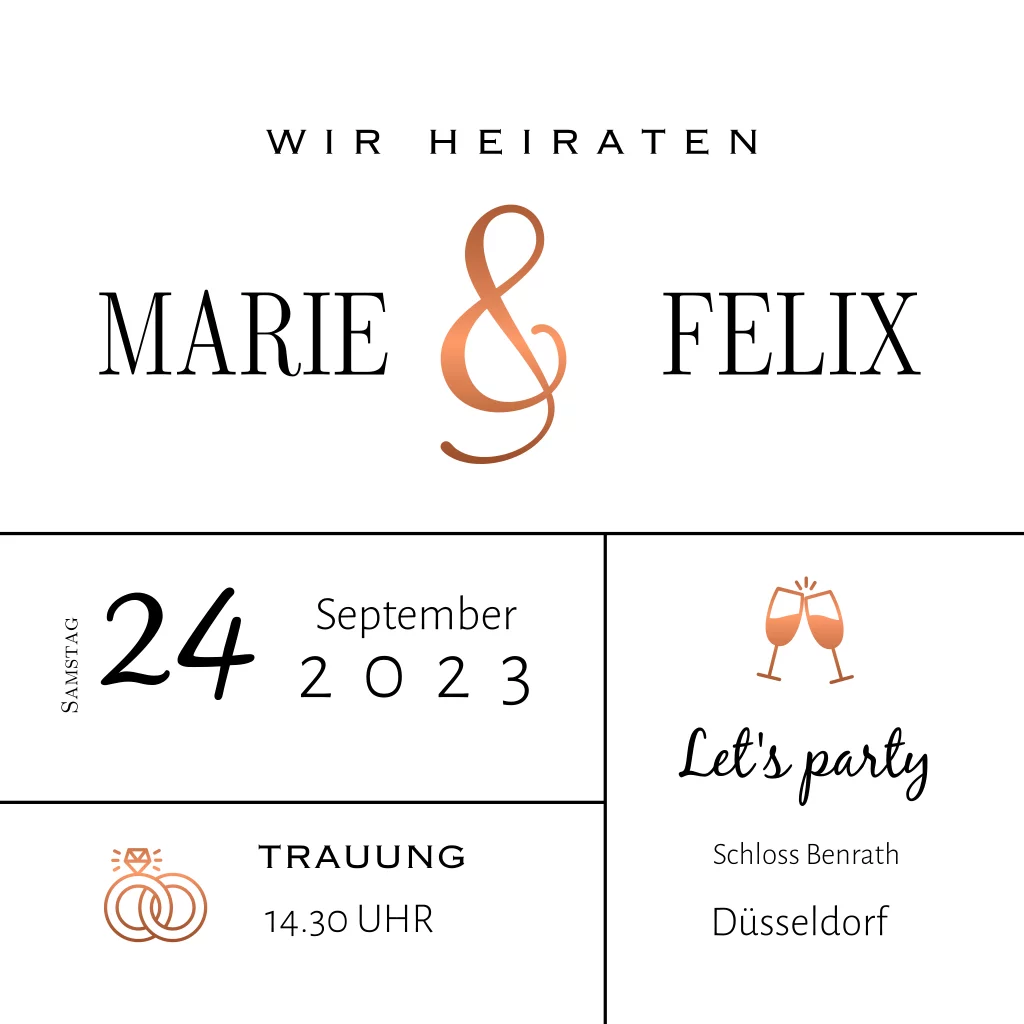 Elegante Hochzeitseinladung mit kleinen icons: "Großer Tag"