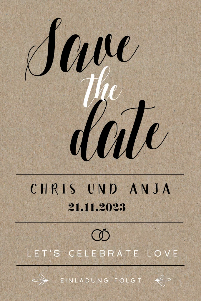 Save the Date Karte auf Kraftpapier mit schöner Schrift: "Lettering"