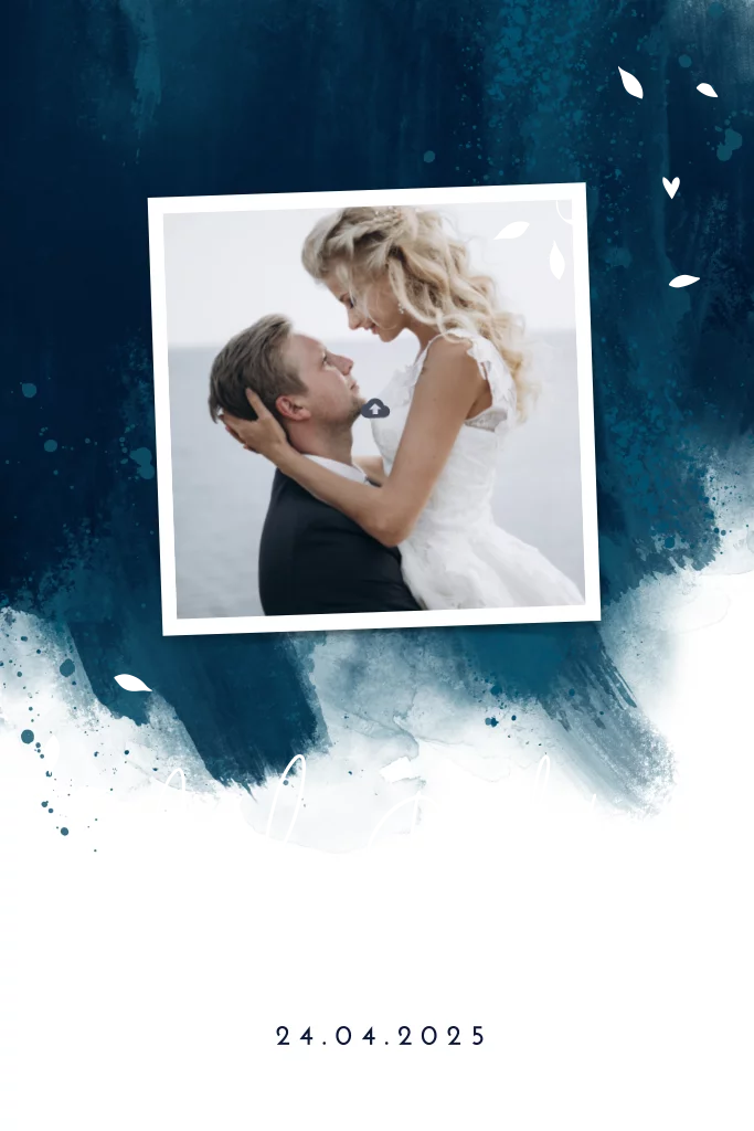 Hübsche blaue Dankeskarte mit Foto und Foliendruck: "Blue Waves"