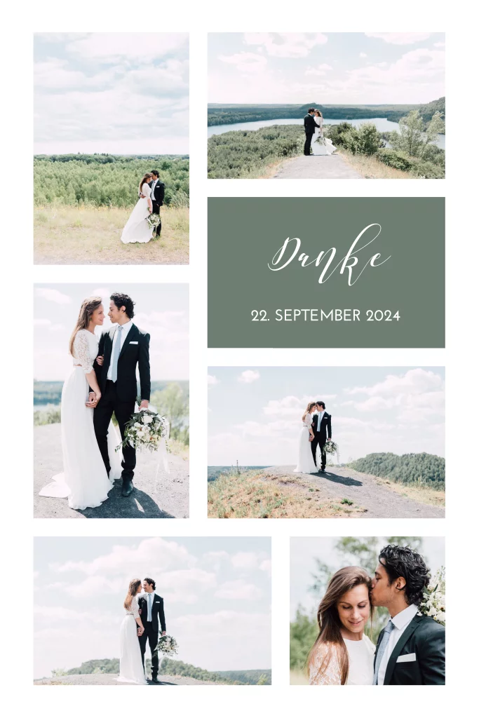 Dankeskarte mit einer Collage Ihrer Hochzeitsbilder