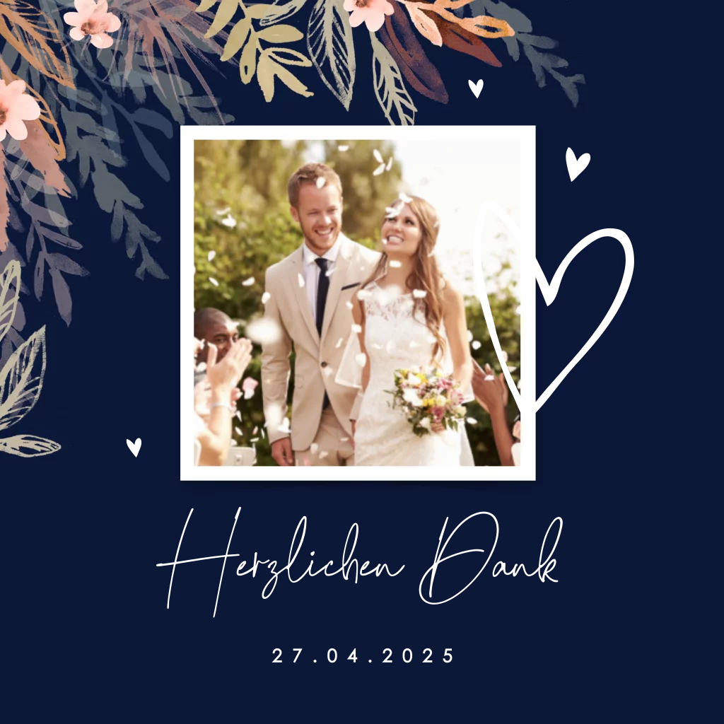 Dankeskarte zur Hochzeit mit persönlichem Foto und Herzen aus Folie