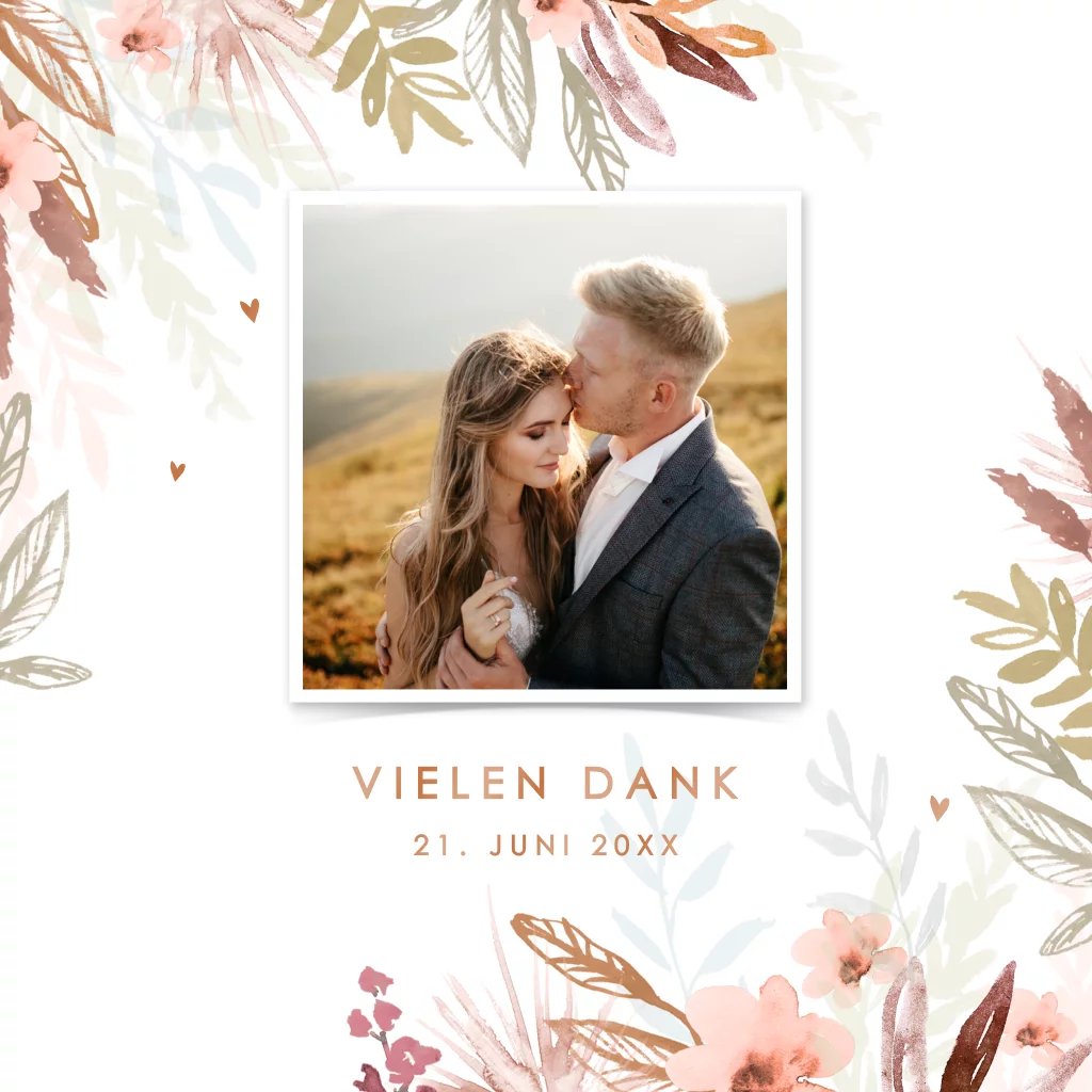 Danksagungskarte für Ihre Hochzeit mit Ihrem Bild und Pflanzenmotiv