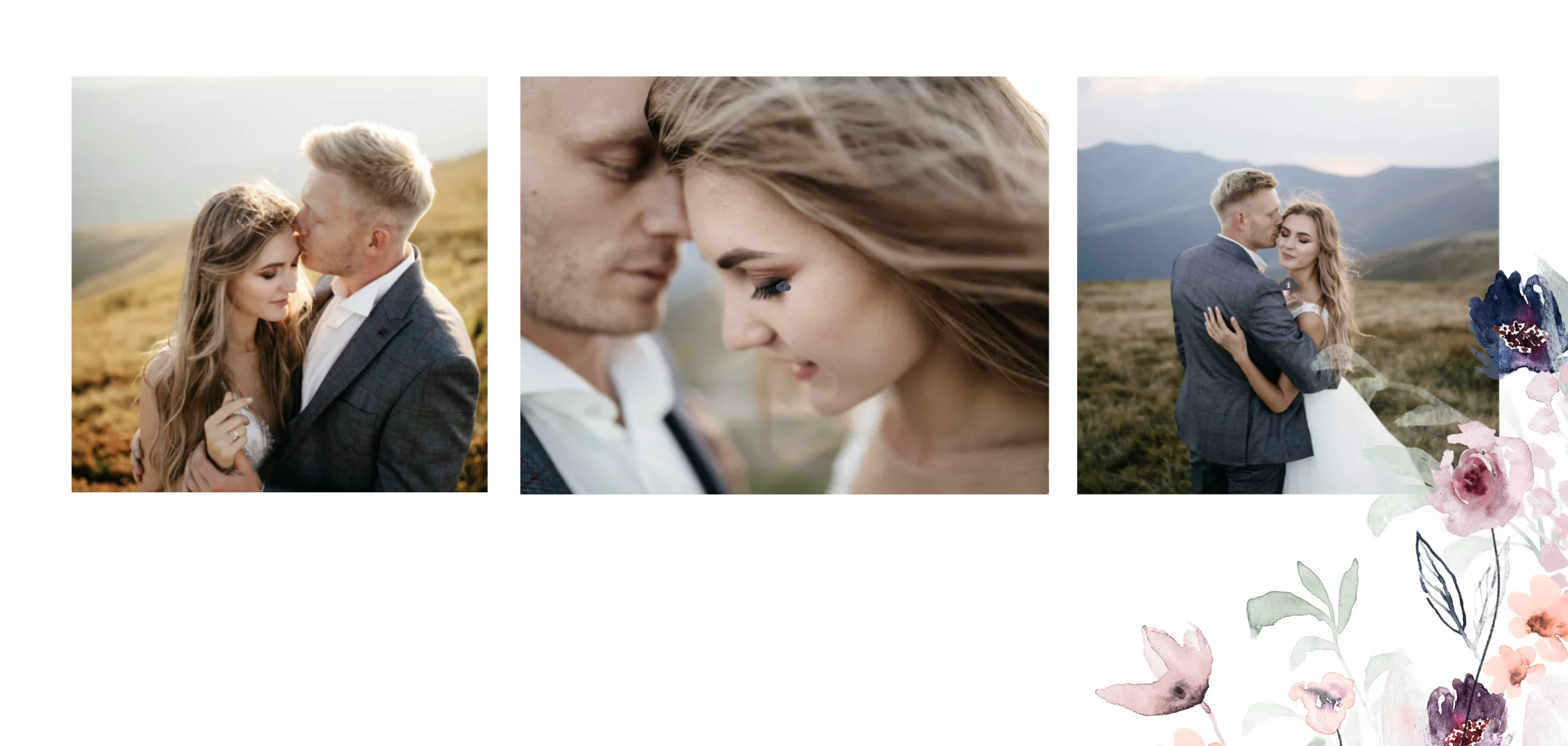 Dankeskarte zur Hochzeit mit drei eigenen Bildern und Blumenmotiv