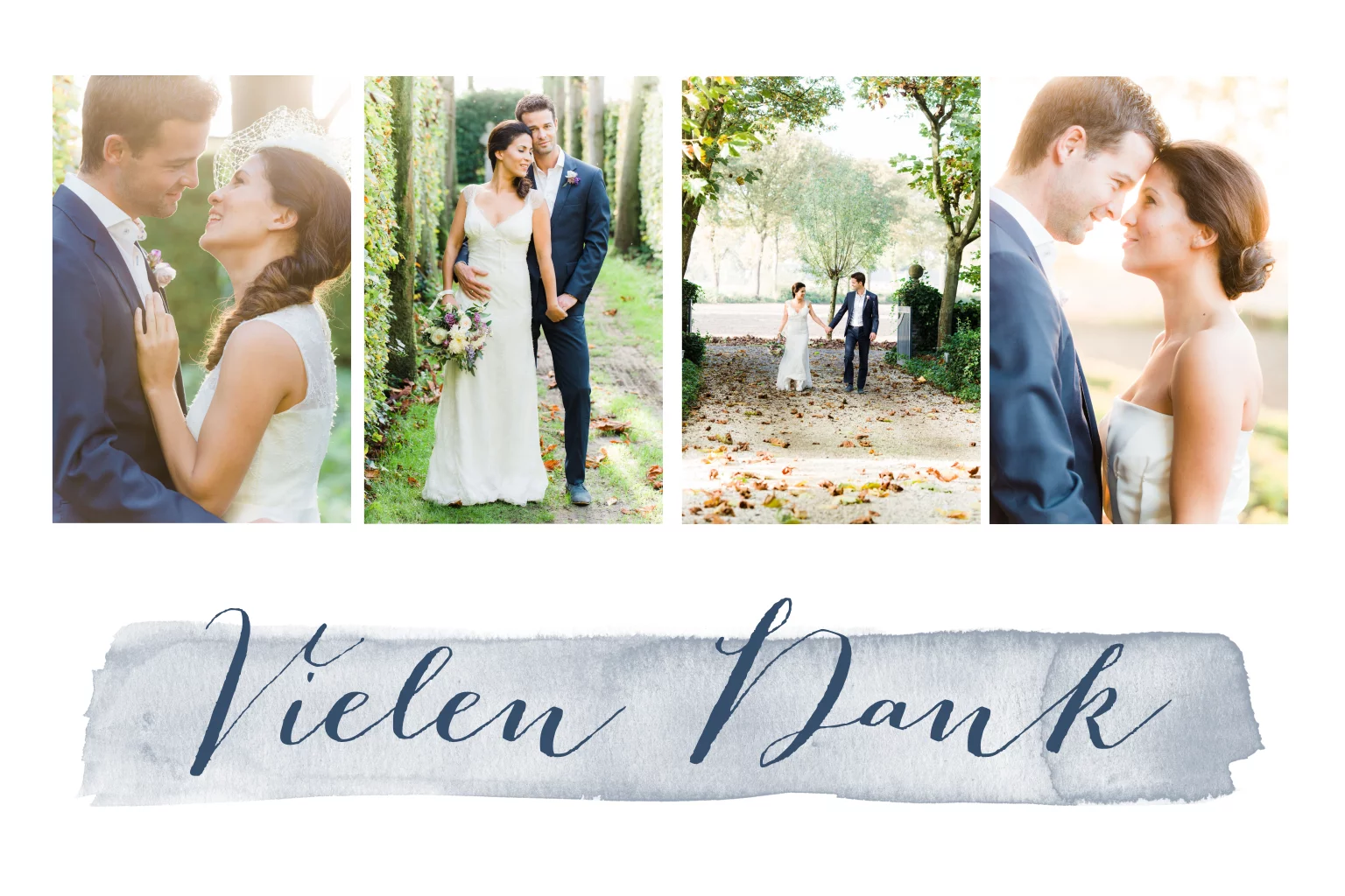 Dankeskarte zur Hochzeit mit Ihren Hochzeitsbildern und Farbakzent