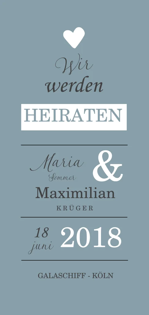 Hochzeitseinladung auf blauem Hintergrund mit weißen Akzenten