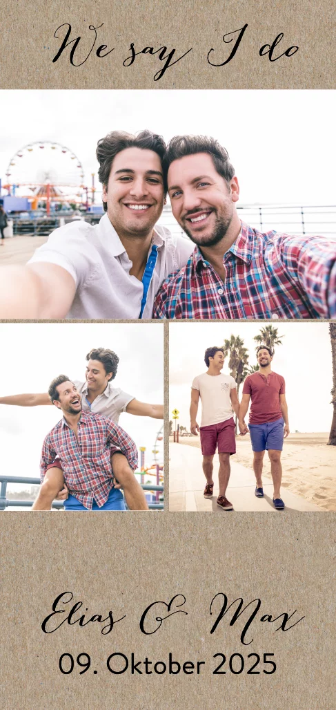 Hochzeitseinladung mit Bildern auf echtem Kraftpapier