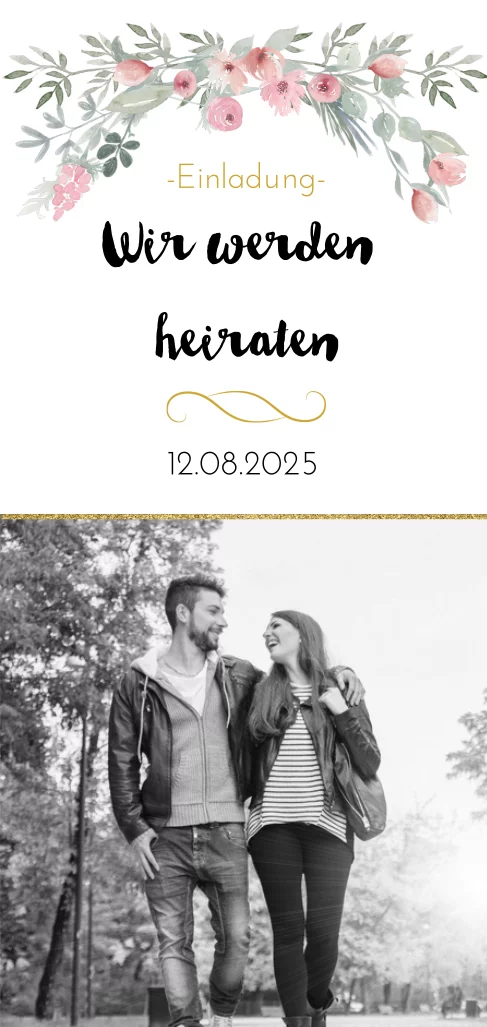 Hochzeitseinladung mit Ihrem persönlichen Bild und Blumengesteck