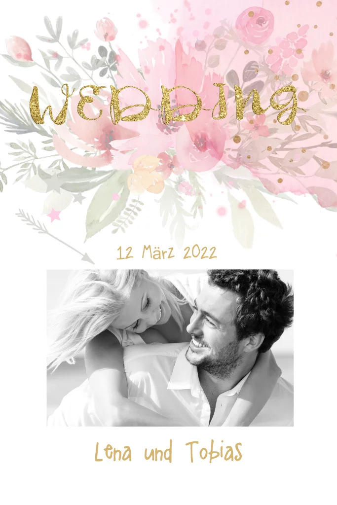 Romantische Hochzeitseinladung mit rosafarbenen Blumen