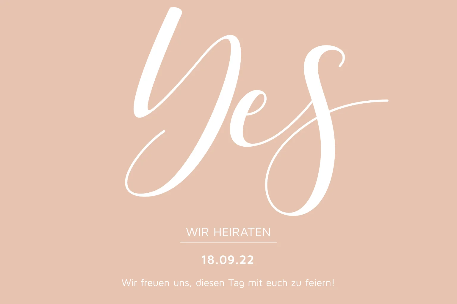 Hübsche Hochzeitseinladung mit einem großen "Yes" als Blickfang