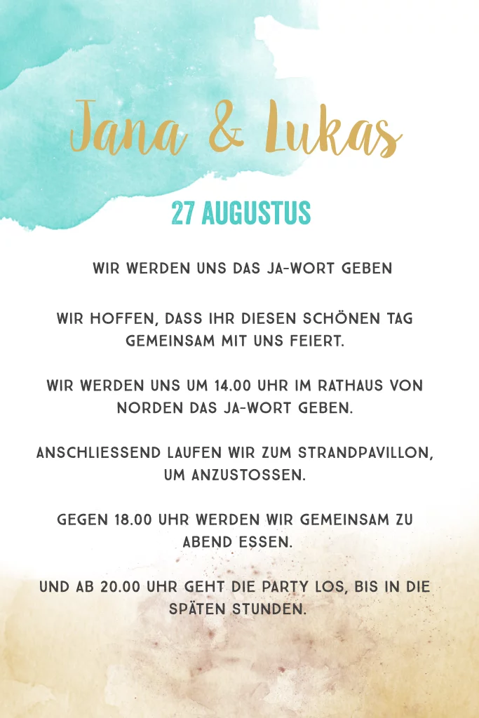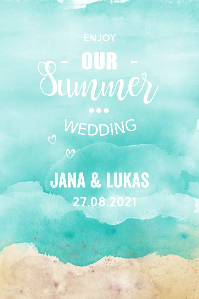 Sommerliche Hochzeitseinladung mit Strand- und Meeresmotiv