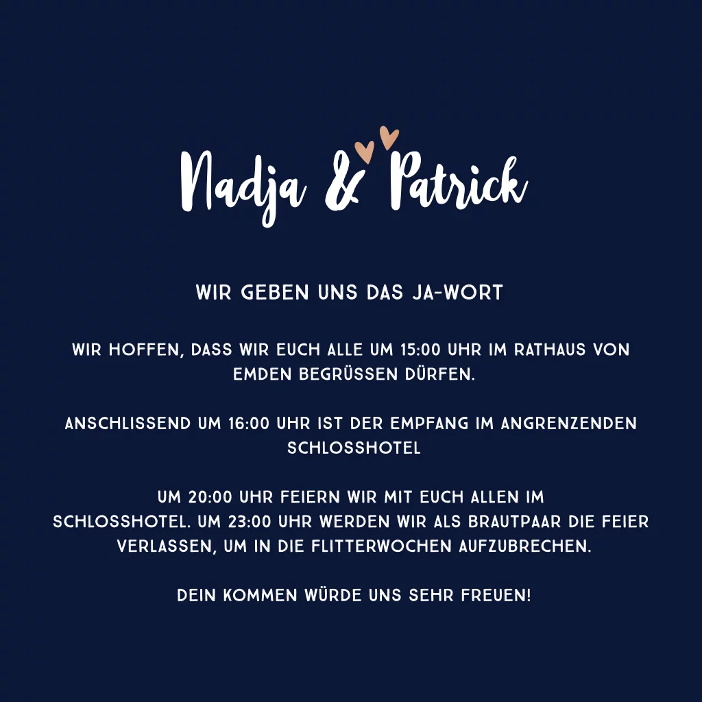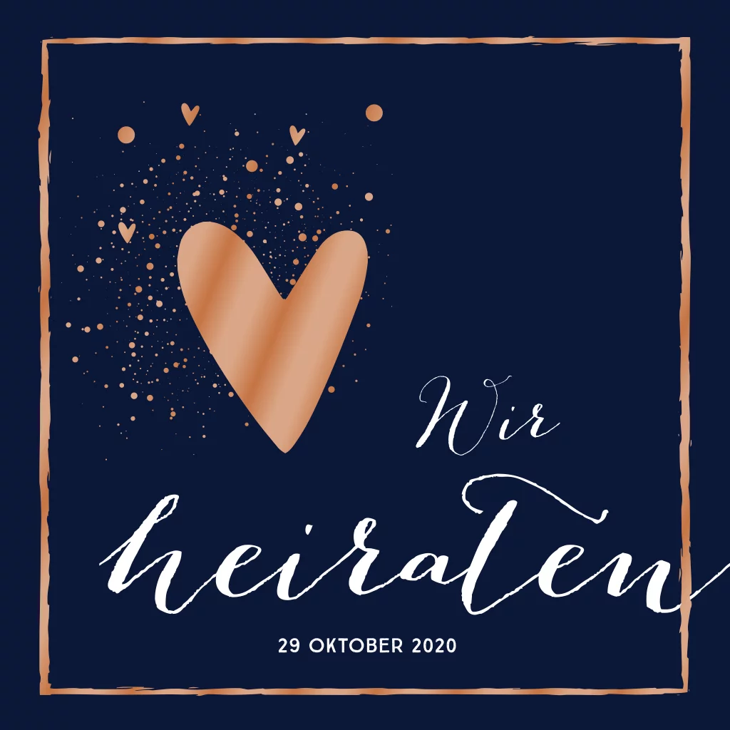 Schicke Hochzeitseinladung mit blauem Hintergrund und Foliendruck