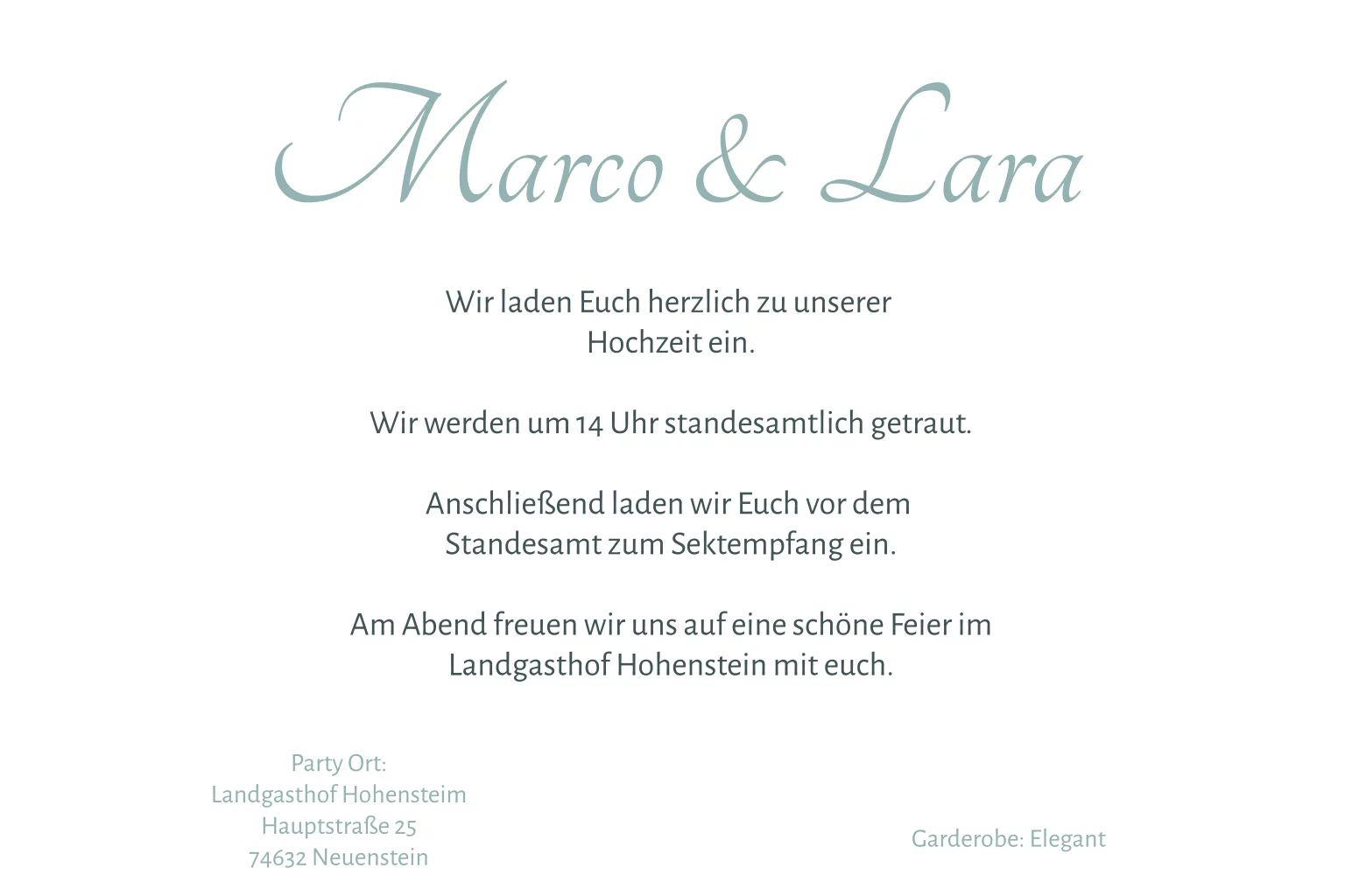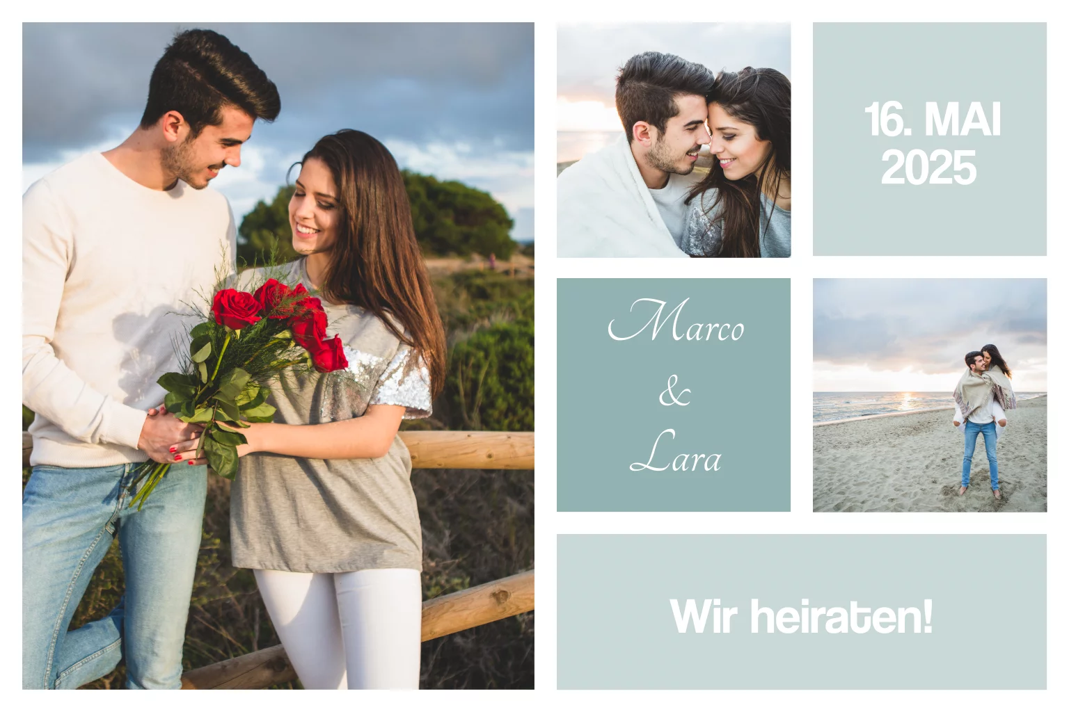 Hochzeitseinladung mit Fotos in einer klaren Struktur