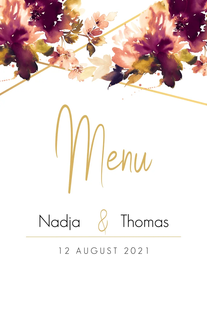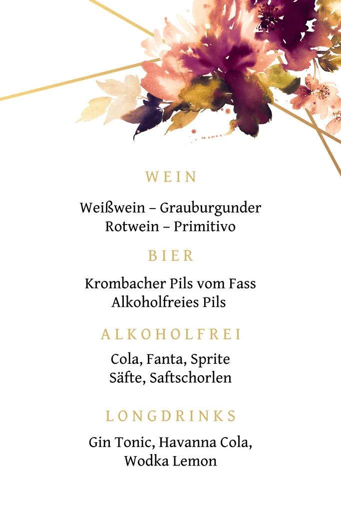 Menükarte mit herbstfarbenen Blättern und goldenen Linien: "Autumn"