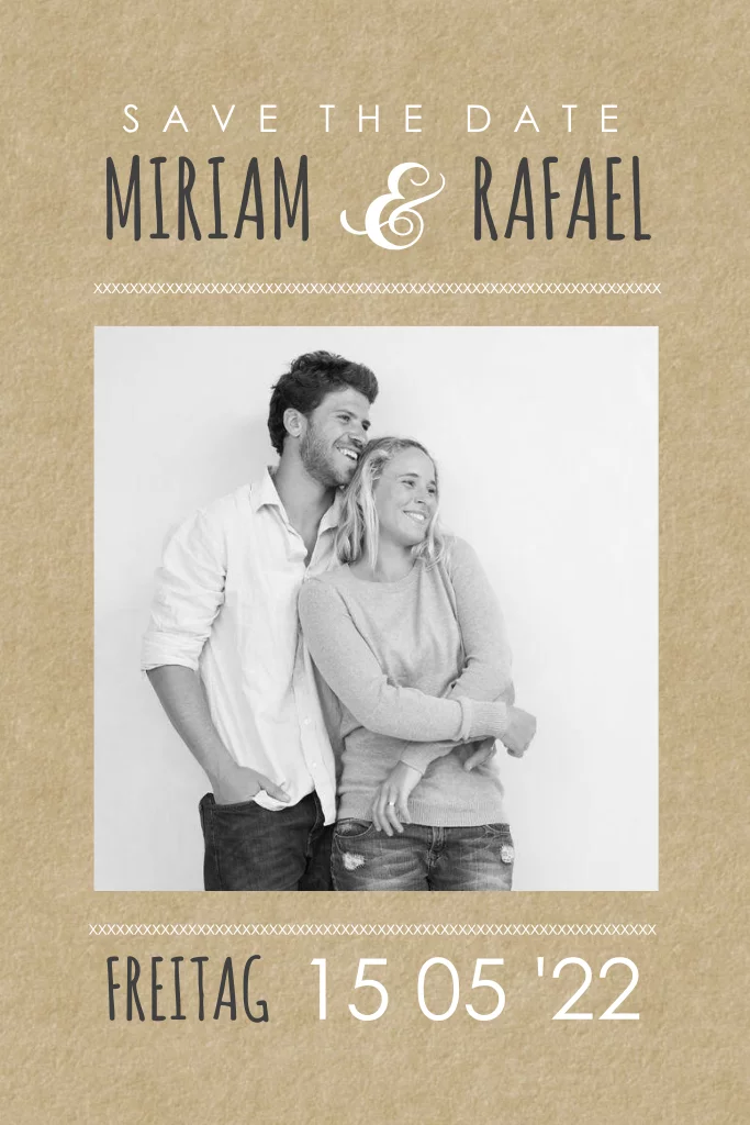 Save the Date Karte mit Ihrem Foto in Kraftpapieroptik