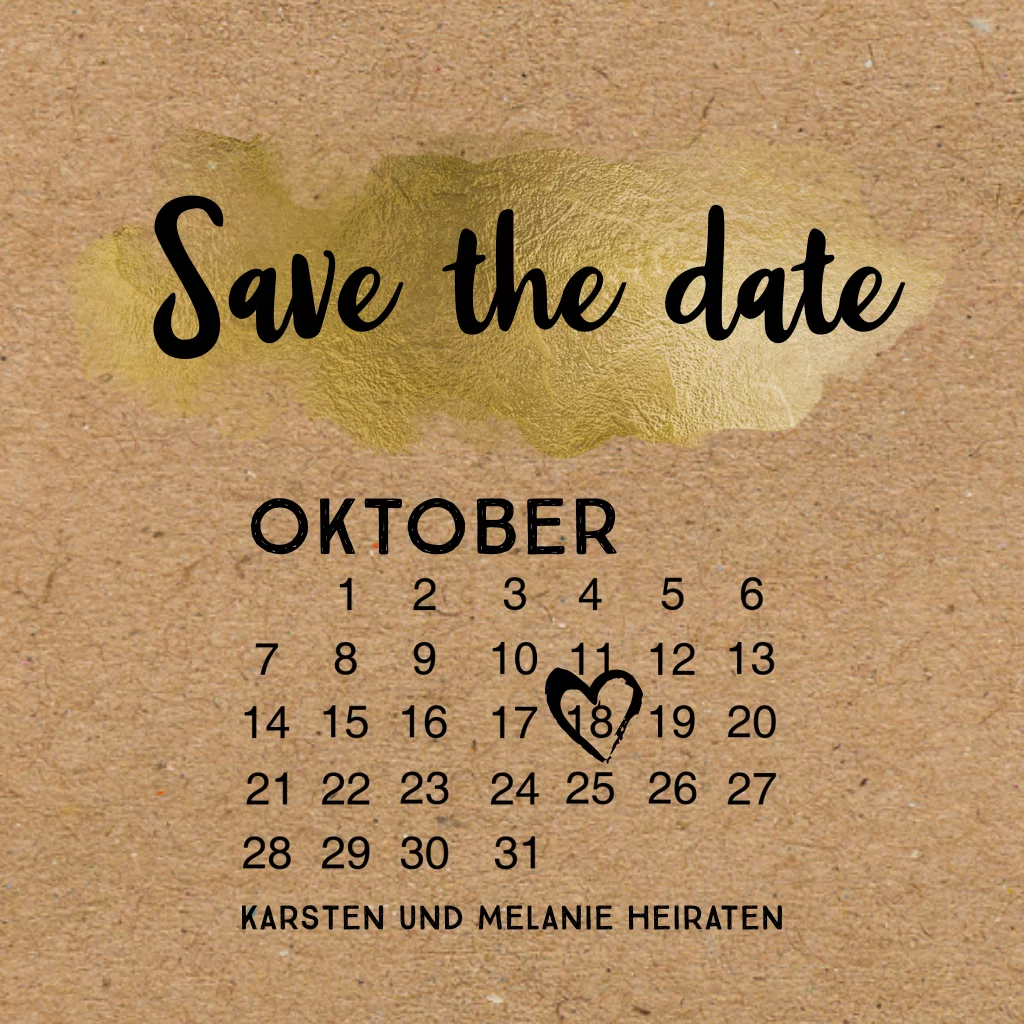 Save the Date Karte mit modernem Kalenderblatt auf Kraftpapier