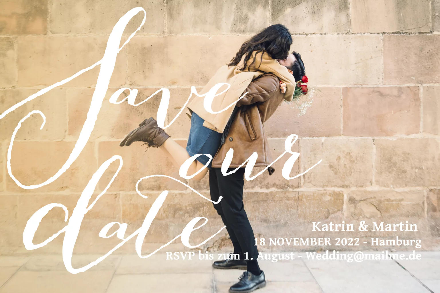 Save the Date Karte mit Ihrem Foto und stilvoller Schrift