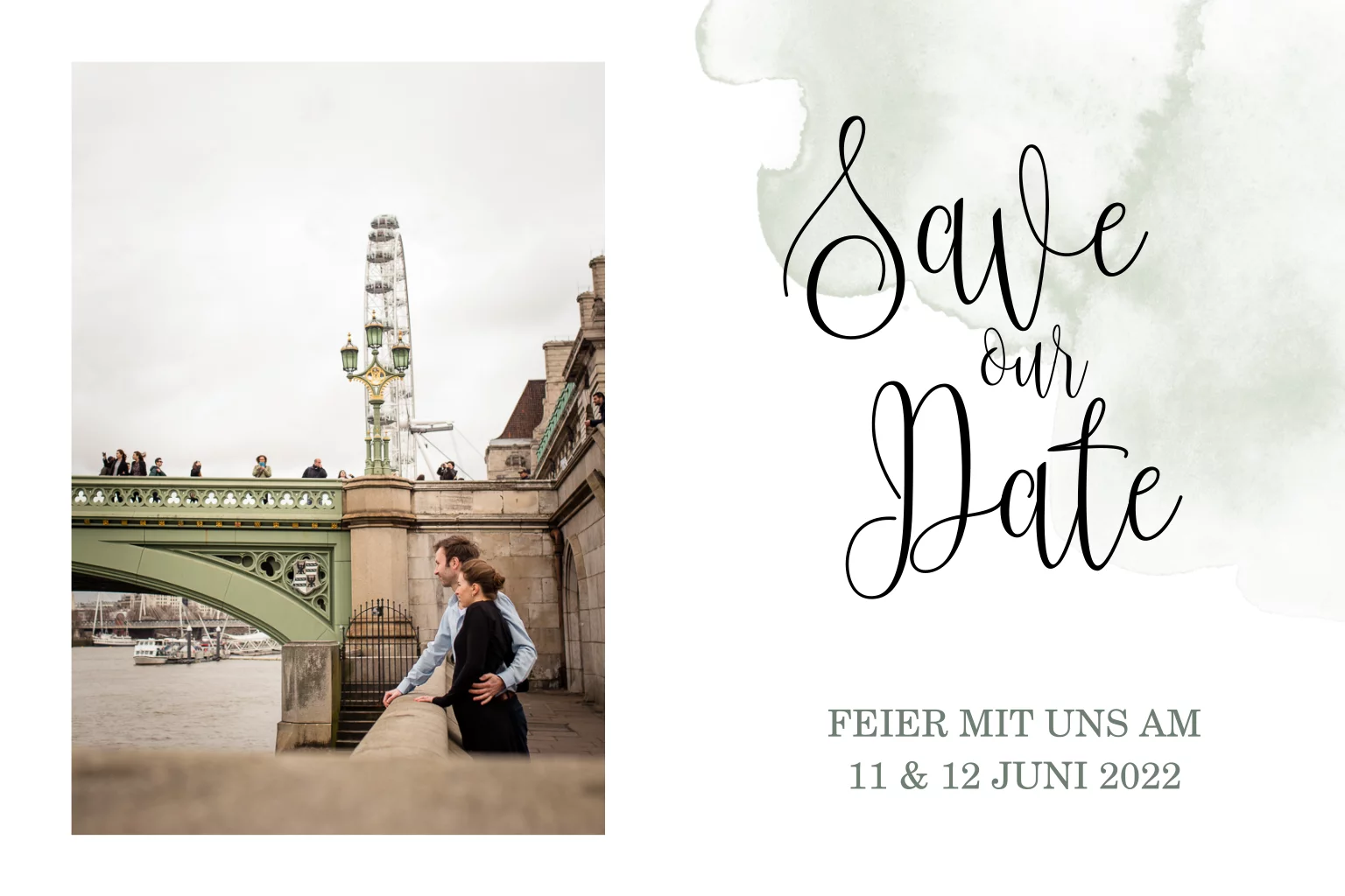 Ihre Save the Date Karte mit Foto und Pastellwolken
