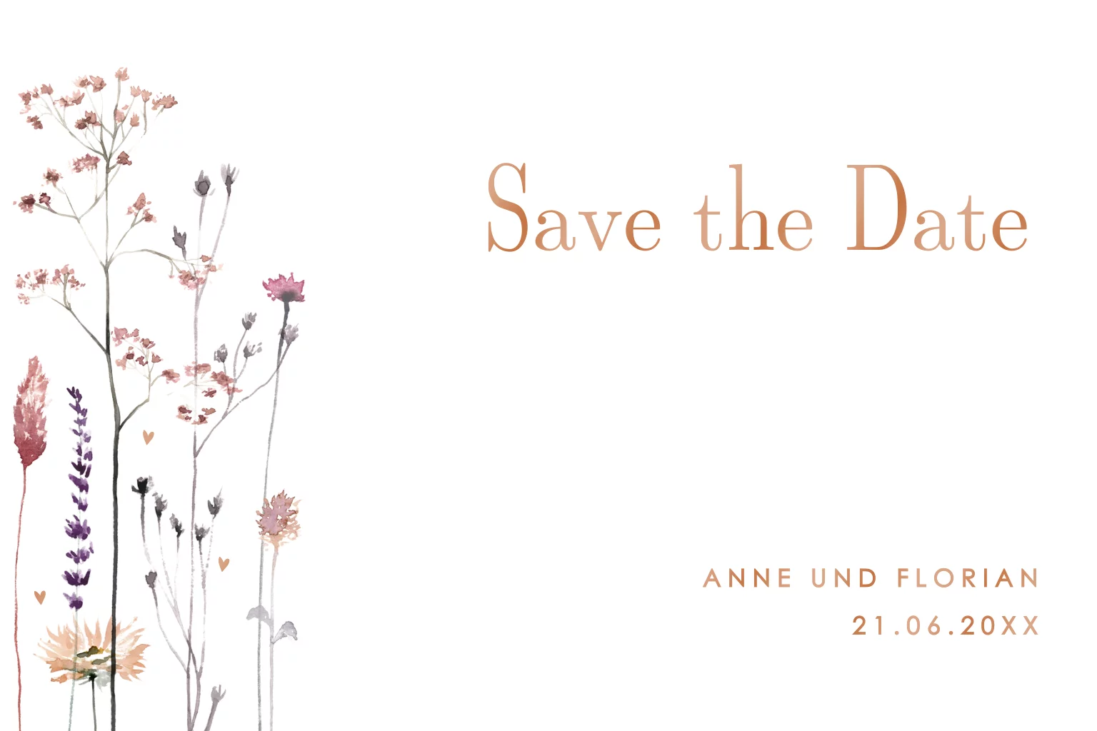 Save the Date Karte mit feinen Blumen und Foliendruck: "Wildblumen"